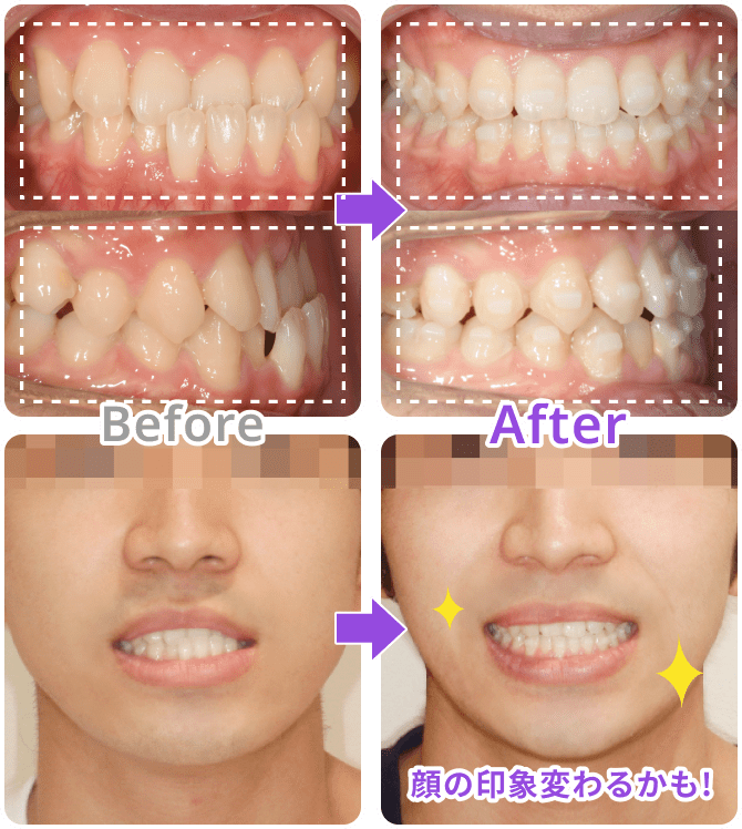 ※ 効果には個人差があります。※治療回数を元に最新の料金を記載、期間は実際にかかった治療期間を記載しています。※矯正後にリテーナーの使用を推奨しておりますが、リテーナーの追加費用は算出しておりませんのでご注意ください。※主なリスク: 虫歯・歯肉炎・歯周病・ブラックトライアングル・歯根吸収・歯肉退縮・1日20時間以上のマウスピース装着が必須・マウスピースにより痛みを感じる可能性・治療中に一時的にかみ合わせに不具合をきたす可能性・最後にお渡しするマウスピースまたはリテーナーを矯正と同等の期間、1日20時間以上の装着を推奨。