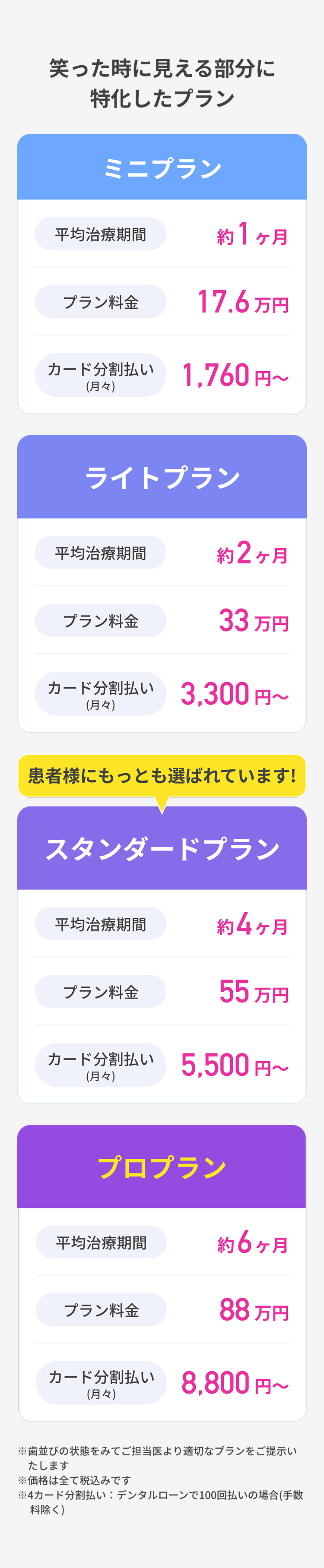※ 治療費用総額は、患者様の歯並びや噛み合わせの状態によって変動いたします。